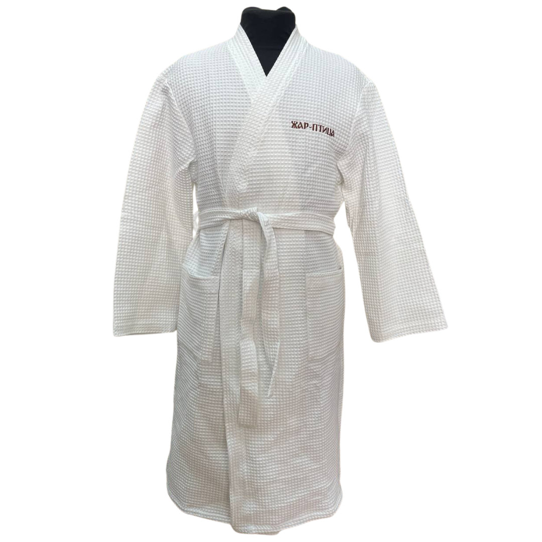 Вафельный белый халат — любовь многих клиентов. Натуральный состав не раздражает кожу и отлично впитывает влагу.